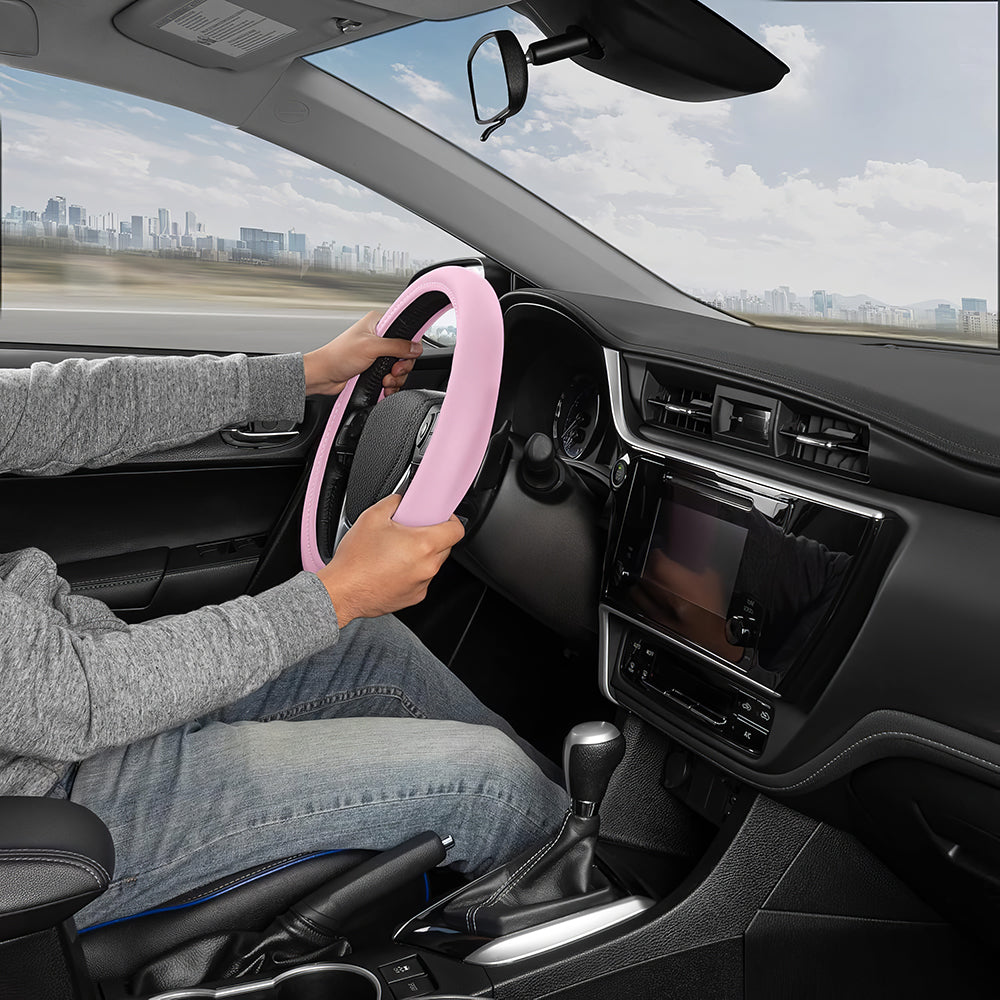Ultra Soft Pink Steering Wheel Cover, Universal 15" Non-Slip Grip